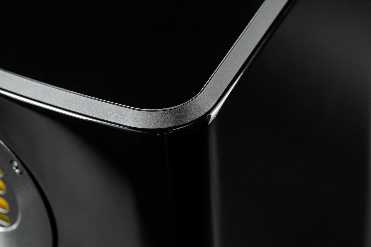 Der Name ist beim neuen Elac Kompaktlautsprecher Programm. Die 2-Wege-Regalbox ist eine echte „Vela“ und bietet eine perfekte Symbiose aus Design, Technologie und authentischem Klang. Wie bei den größeren Komponenten ist das Gehäuse leicht nach hinten geneigt und bildet mit der Trapezform und den großen Radien eine perfekte Basis für exzellente Klangperformance. Gleichzeitig entsteht dadurch eine sehr elegante, zeitlose Optik. Die Behausung der Schallwandler ist aus Holzwerkstoff gefertigt und weist für geringe Vibrationen eine hohe Materialstärke auf. Als Finish stehen zum einen hochwertige Hochglanz-Lackierungen, zum anderen ein attraktives Echtholzfurnier zur Wahl. Zahlreiche Aluminium-Applikationen und eine akribisch sorgfältige Verarbeitung runden den positiven Eindruck der Vela BS 404 ab.