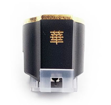 Der Tonabnehmer der Spitzenklasse verfügt über einen "nackten" Diamanten mit Micro-Line-Schliff. Dieser sitzt in einem Nadelträger, der an seinem inneren Ende akribisch gewickelte Spulen aus hochreinem Kupfer trägt. Das Gehäuse aus dem hochdämpfenden Spezialkunststoff Delrin ist fest mit dem Gehäuseträger aus Messing verbunden.
