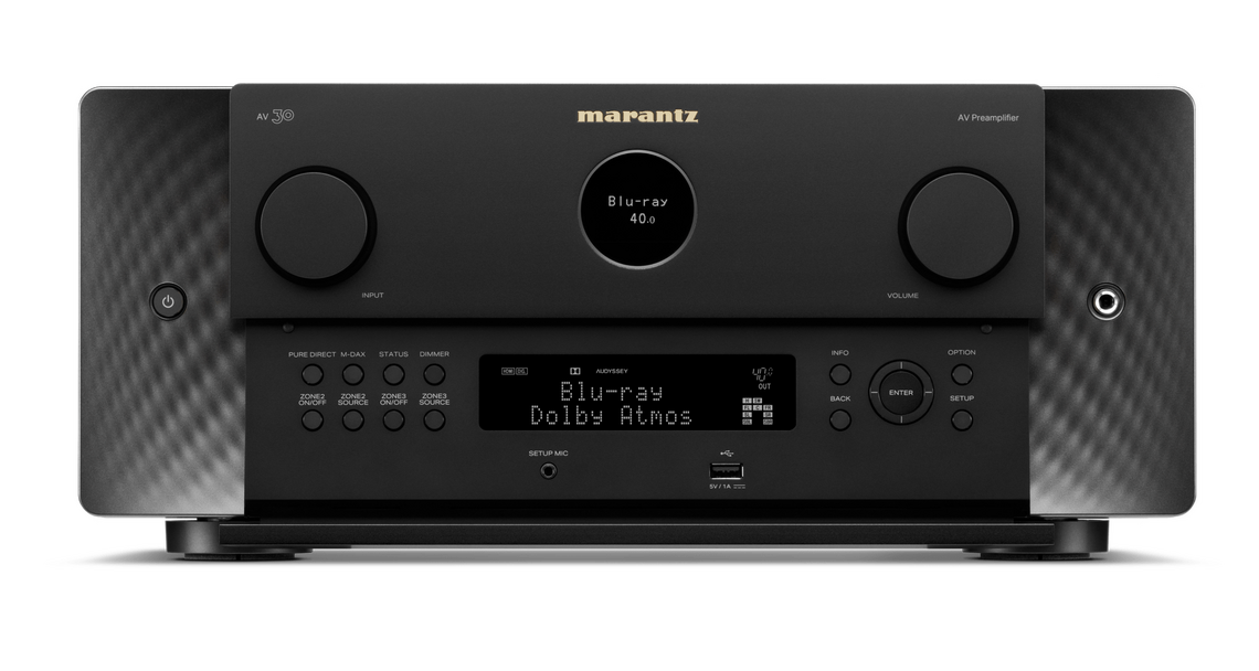 Der Marantz AV30 ist der Einstieg in die Welt der High-End-Surroundprozessoren von Marantz und wurde entwickelt, um Film- und Musikmaterial mit höchster Präzision wiederzugeben. Er kombiniert edles Design, robuste Verarbeitung und modernste Audio-/Videotechnik in einem vielseitigen Gerät, das selbst anspruchsvolle Systeme souverän antreibt. Mit Unterstützung aktueller 3D-Audioformate und leistungsstarker Einmess-Optionen bietet der AV30 ein beeindruckend immersives Klangerlebnis. Der integrierte HEOS-Streamingkomfort, die umfangreiche Anschlussvielfalt sowie die intuitive Bedienung runden das Gesamtpaket ab. Ein Surroundprozessor, der technologischen Anspruch und Musikalität gekonnt miteinander verbindet.