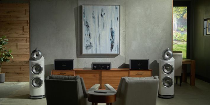 Die Stromversorgung übernehmen zwei speziell entwickelte, extrem rauscharme Ringkern-Transformatoren. Vier britische Hochleistungs-Slit-Foil-Kondensatoren gehören ebenso zum konsequenten Gesamtkonzept. Nicht weniger als 32 Hochstrom-Ausgangstransistoren stehen für untadelige Präzision und ein perfektes Timing, auch im kritischen Bassbereich wird eine praktisch optimale Kontrolle geboten.