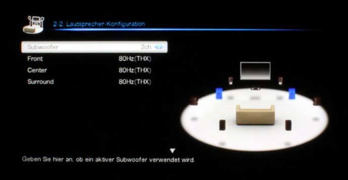 Beim Basslautsprecher ist der genaue Standort wegen der tiefen Wellenlänge der zu übertragenden Audioinformationen, die teilweise sogar über den Boden übertragen werden, nicht so entscheidend. Man sollte hier allerdings aufpassen, dass die obere Grenzfrequenz des aktiven Subwoofers in einem hochwertigen Setup nicht die 100 Hz überschreitet, denn dann ist der Basslautsprecher zu orten. Oftmals machen zwei besonders schnell ansprechende, kompakte Subwoofer Sinn, die Bass-Wiedergabe erscheint homogener, zudem sprechen die beiden kleineren Chassis in den Subwoofern mit höherer Impulstreue an als ein großes, trägeres Chassis.