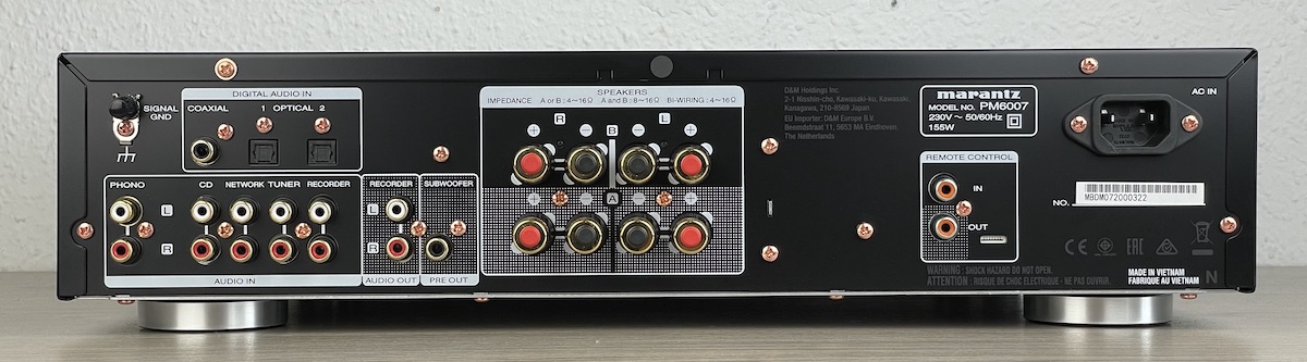 Wer das Design von Marantz mit hohem optischen Wiedererkennungswert schätzt, kann zum PM6007 greifen, der für 459,00 € in schwarz oder silbergold angeboten wird. Der Aufbau inklusive leistungsstarkem Ringkern-Trafo spricht für sich – und die 2 x 60 Watt an Leistung (RMS) mögen nicht gigantisch klingen, in der Praxis aber stehen diese Leistungsreserven auch tatsächlich zur Verfügung. Ein geschirmter Ringkerntransformator garantiert stets hohe Stromlieferfähigkeit. Marantz’ hochwertige HDAM SA3-Technologie in der Ausgangsstufe ist für den kultivierten, klaren Klang des PM6007 mit verantwortlich. Anschlussseitig verfügt der PM6007 über einen koaxialen Digitaleingang und zwei optische Digitaleingänge sowie analoge Anschluss-Optionen. Auch ein Plattenspieler mit MM-Tonabnehmersystem kann dank der eingebauten Phono-Vorstufe direkt mit dem PM6007 verbunden werden, und sogar ein Subwoofer Pre-Out ist vorhanden.