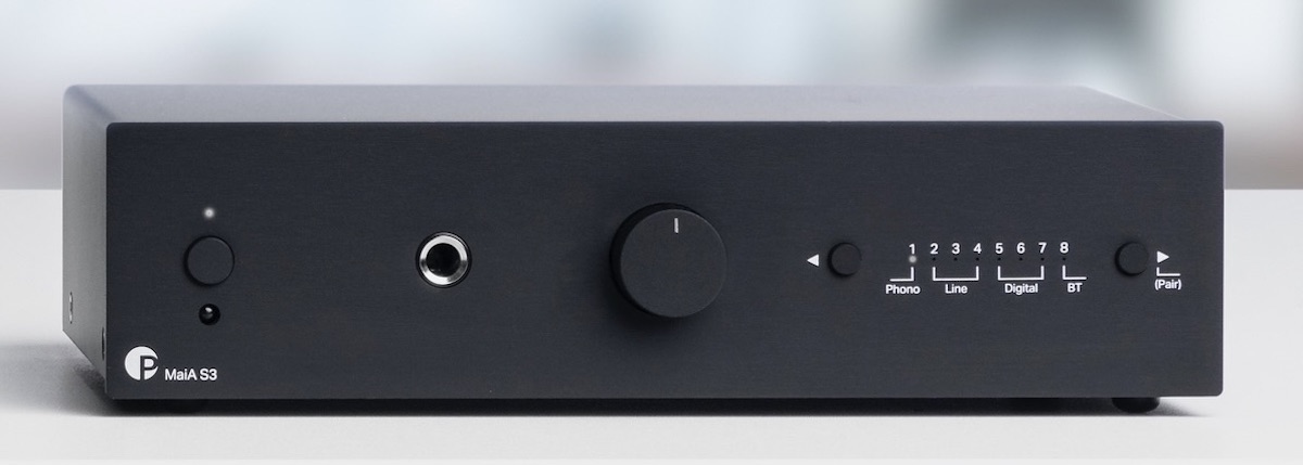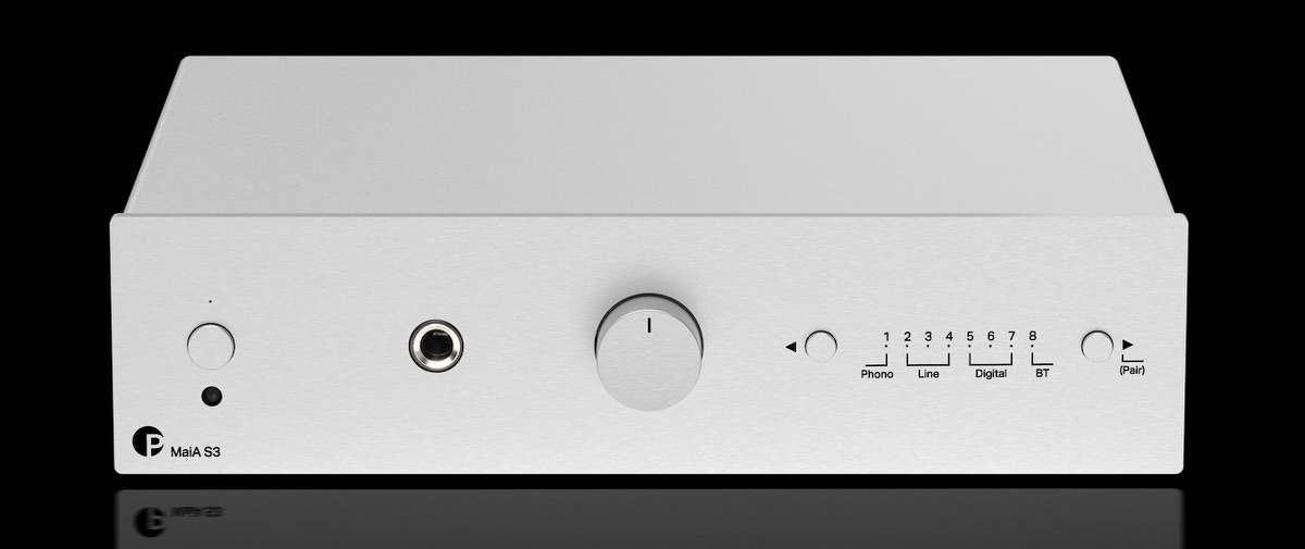 Optisch herrscht elegante Zurückhaltung beim Pro-Ject MaiA S3 Vollverstärker für 579,00 € vor. Sein penibel verarbeitetes Aluminiumgehäuse findet überall Platz und schützt effektiv vor Störungen von außen. Es beherbergt ein durchdachtes Dual Mono-Schaltungslayout sowie Endstufen mit 2 x 40 Watt an 4 Ohm. Insgesamt sieben kabelgebundene Eingänge (5 x Analog, 3 x Digital) plus Bliuetooth 5.0 inklusive aptX sind vorhanden. Besondere Erwähnung verdient die aufwändige Phonovorstufe, die, was in dieser Preisklasse äußerst selten ist, nicht nur für MM-, sondern auch für MC-Tonabnehmersysteme geeignet ist. Ein variabler Ausgang für einen Subwoofer oder aber einen weiteren Verstärker steht ebenfalls bereit.