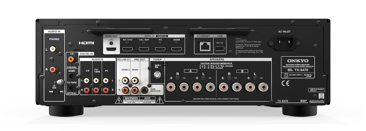 Ausstattung in sprichwörtlicher „Hülle und Fülle“ offeriert der Onkyo TX-8470 Stereo-Receiver für 699,00 € im 43 cm-Rastermaß. Potente Class G-Verstärker mobilisieren dabei 140 Watt/Kanal (an 4 Ohm) und stellen alle weiteren Merkmale und Funktionen klanglich auf eine solide Grundlage. Neben dem UKW- und DAB/DAB+ Tuner hat auch eine reichhaltig bestückte Streaming-Sektion ihren Weg in den Stereo-Receiver gefunden. Google Chromecast, Apple AirPlay 2, Roon ready und die Kompatibilität zu Sonos-Systemen führen wir hier als Beispiele auf. WiFi und Bluetooth bietet der TX-8470 selbstredend auch. Dank einer HDMI-ARC-Schnittstelle ist der Kontakt mit dem Smart-TV im Handumdrehen hergestellt, und der TX-8470 schleift sogar 8K-Videosignale durch. Wer es lieber traditionell-analog mag, findet im TX-8470 genauso den richtigen Partner, denn eine Phonovorstufe für MM- und MC-Systeme gehört ebenfalls mit zum Feature-Paket.