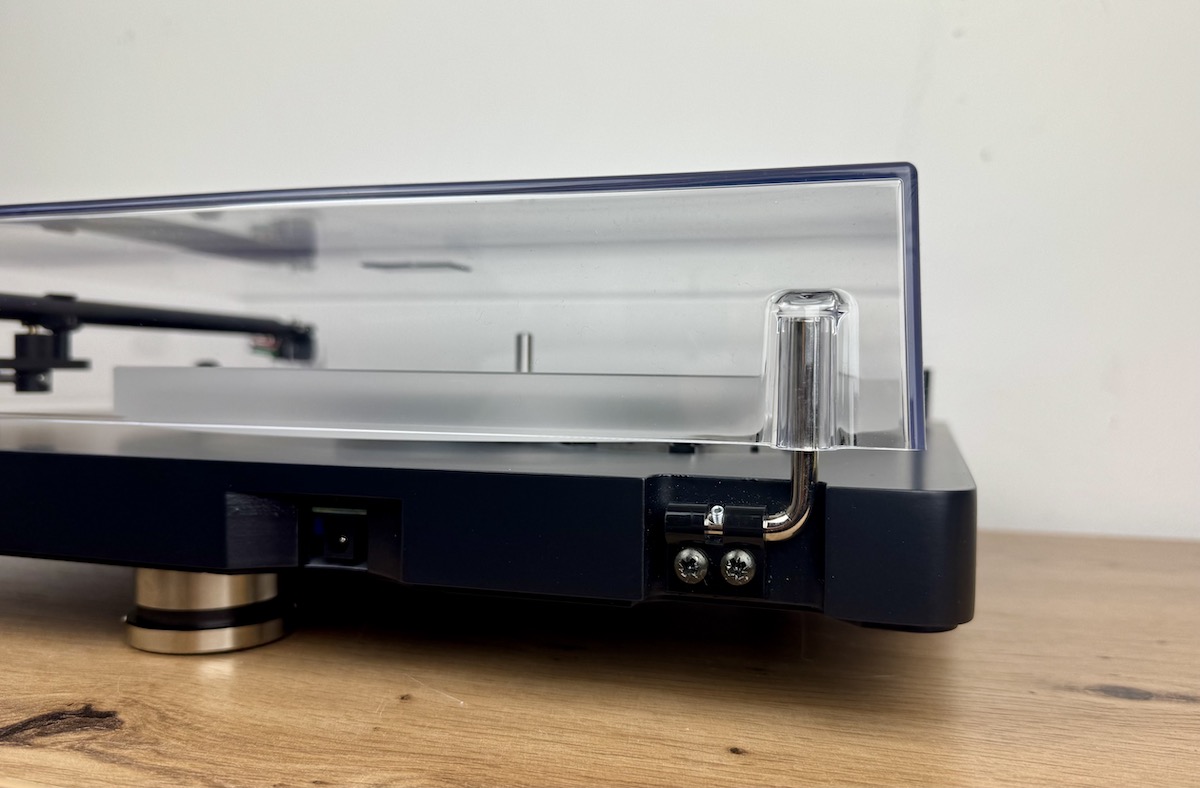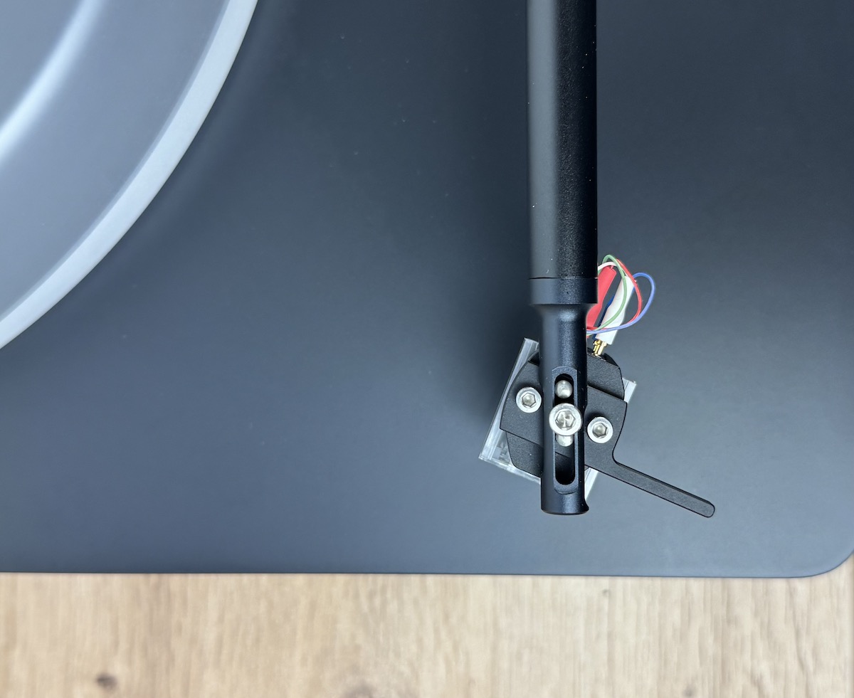 Die Handhabung des, wie erwähnt, vollmanuellen compass ist einfach. Unter dem Gehäuse befindet sich der Kippschalter, der für die beiden Geschwindigkeiten 33 1/3 und 45 U/min in die jeweils passende Position gestellt wird. Sofort beginnt der Plattenteller, sich leise zu bewegen. Ein aus hochwertigem Aluminium gefertigter, haptisch hochwertiger Hebel hilft dabei, den Tonarm präzise abzusenken – und die Wiedergabe kann beginnen.