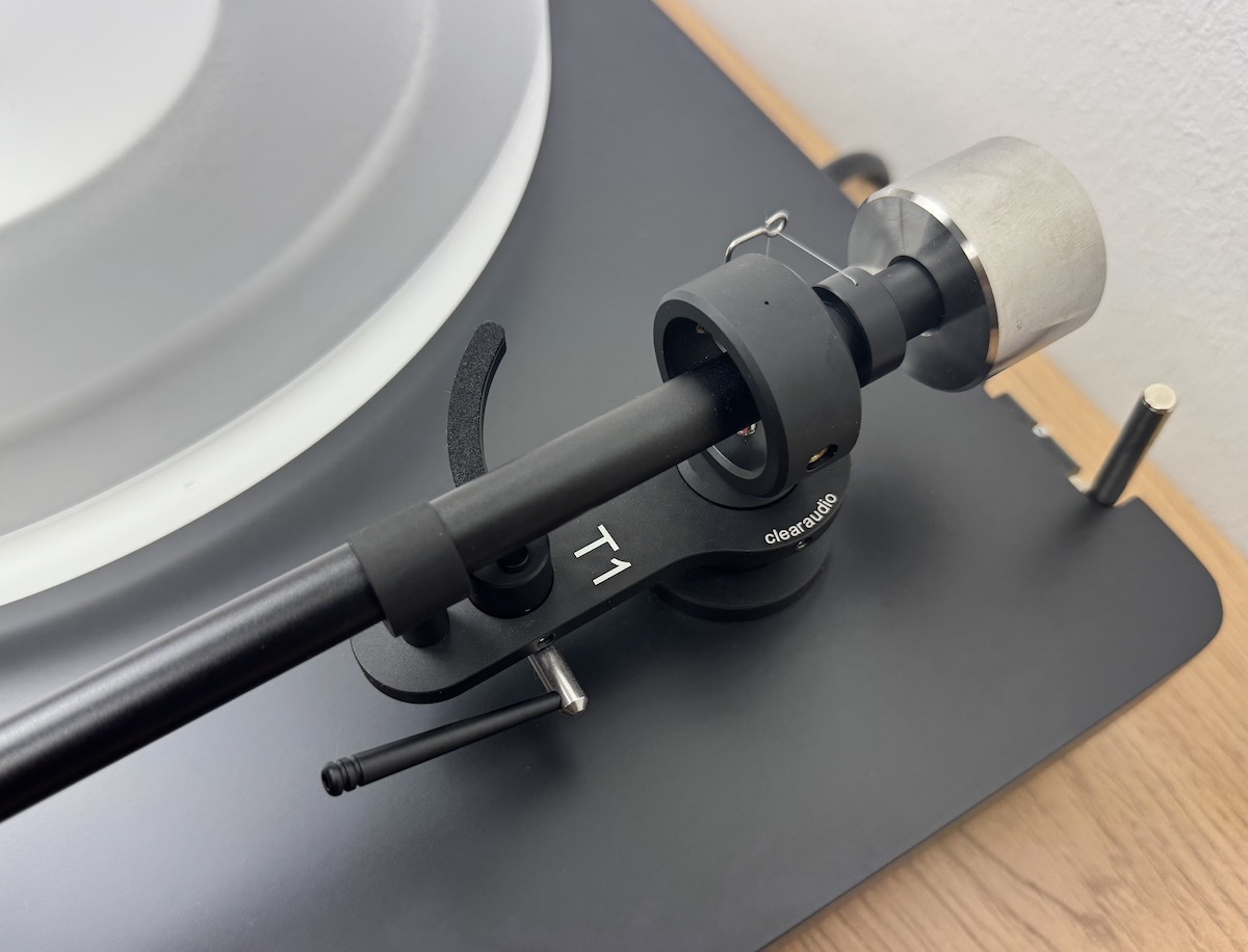 Damit die wertvollen Vinylscheiben auch in hoher Qualität abgetastet werden können, setzt clearaudio eine kleinere Variante des weithin geschätzten T1-Tonarms ein. Und auch zum eben angesprochenen Plattenteller finden sich wichtige Ergänzungen, denn dieser wird aus massivem Acryl hergestellt, und der Subteller ist aus Aluminium und CNC-präzisionsgedreht.