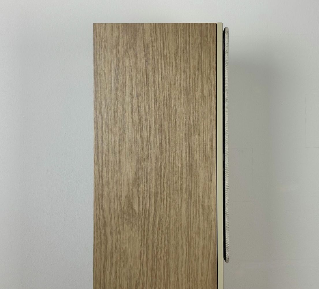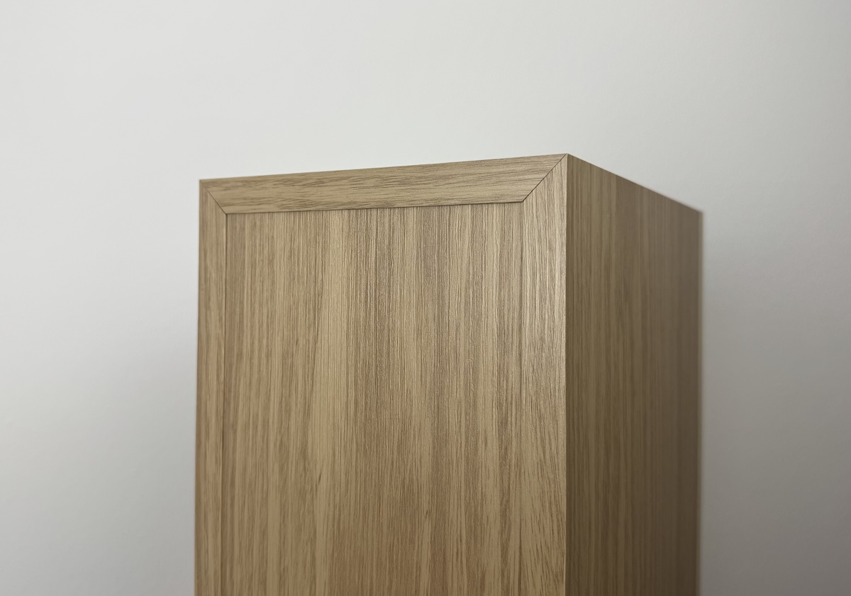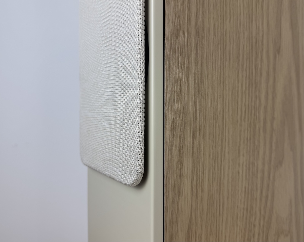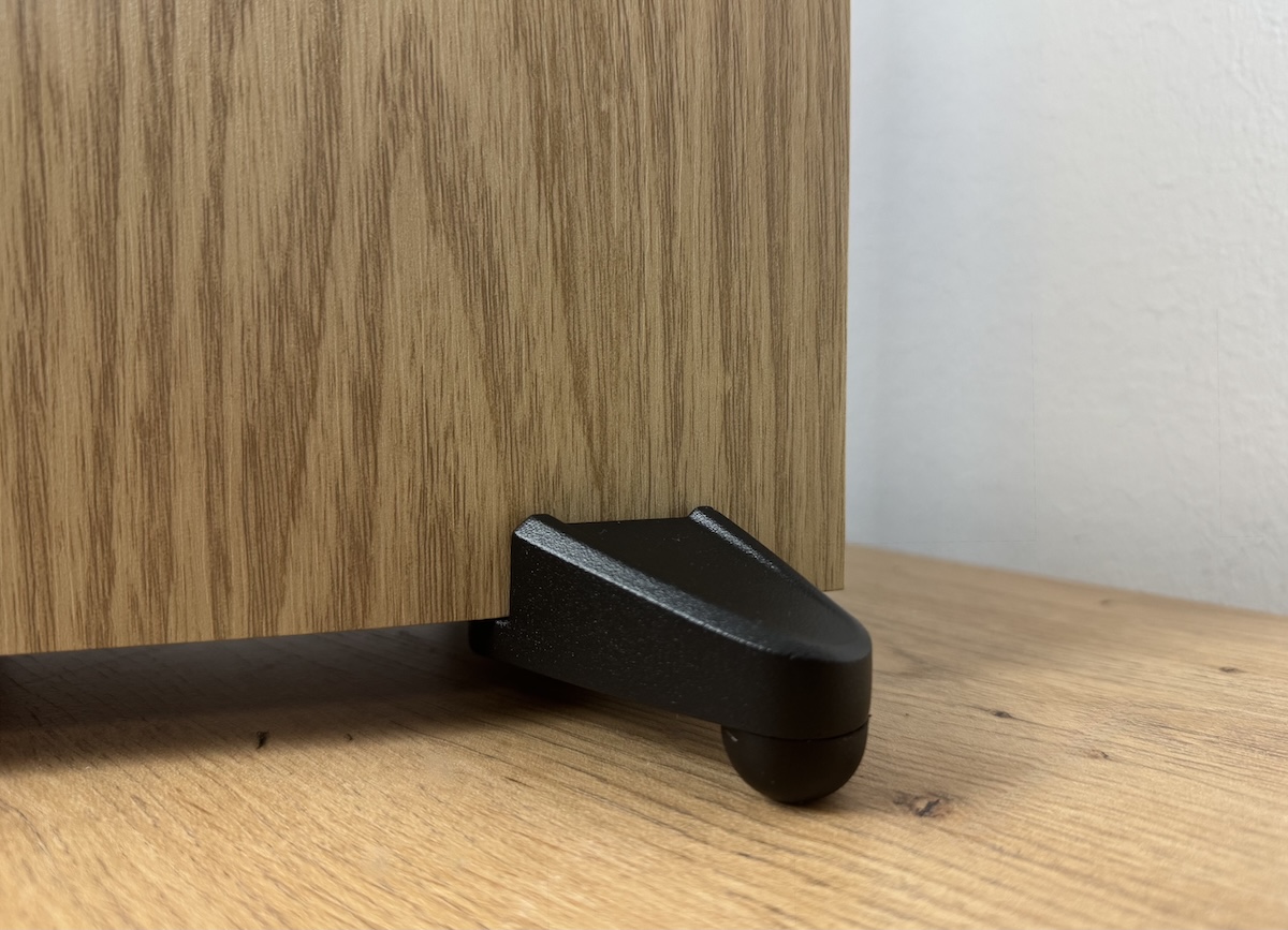 Bei den Lautsprechern der SONIK-Serie ist die Schallwand ein separates Bauteil und mit kleinem, gleichbleibenden Spaltmaß am Gehäuse befestigt. In die Schallwand ohne sichtbare Schrauben eingelassen wurde der 29 mm Hochtöner, während die beiden 13,35 cm messenden Tiefmitteltöner mit sichtbaren Schrauben eingepasst wurden.