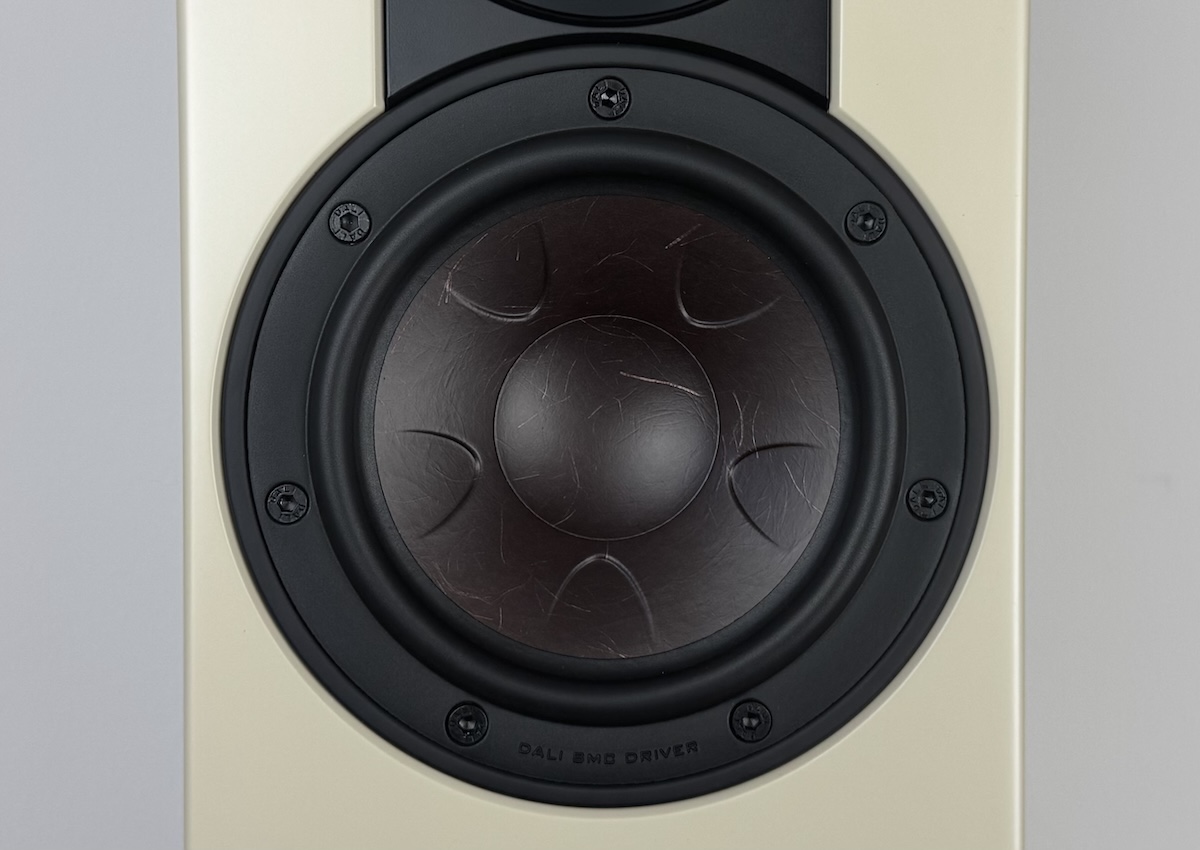 Eine verlustarme Arbeitsweise steht auch bei den beiden jeweils 13,35 cm messenden Tiefmitteltönern im Vordergrund. Sie besitzen DALIs „Clarity Cone“-Membranstruktur, die aus feinkörnigem Zellstoff und aus Holzfasern besteht. Durch diese Material-Mixtur erreicht DALI ein ausgesprochen geringes Gewicht, verbunden mit hoher Steifigkeit und enormer maximaler Belastbarkeit. Auch werden störende Resonanzen minimiert.