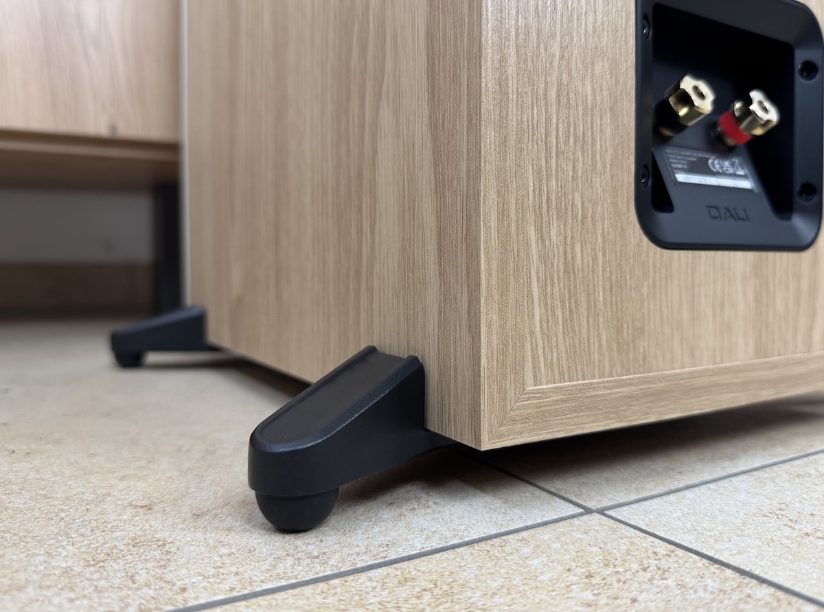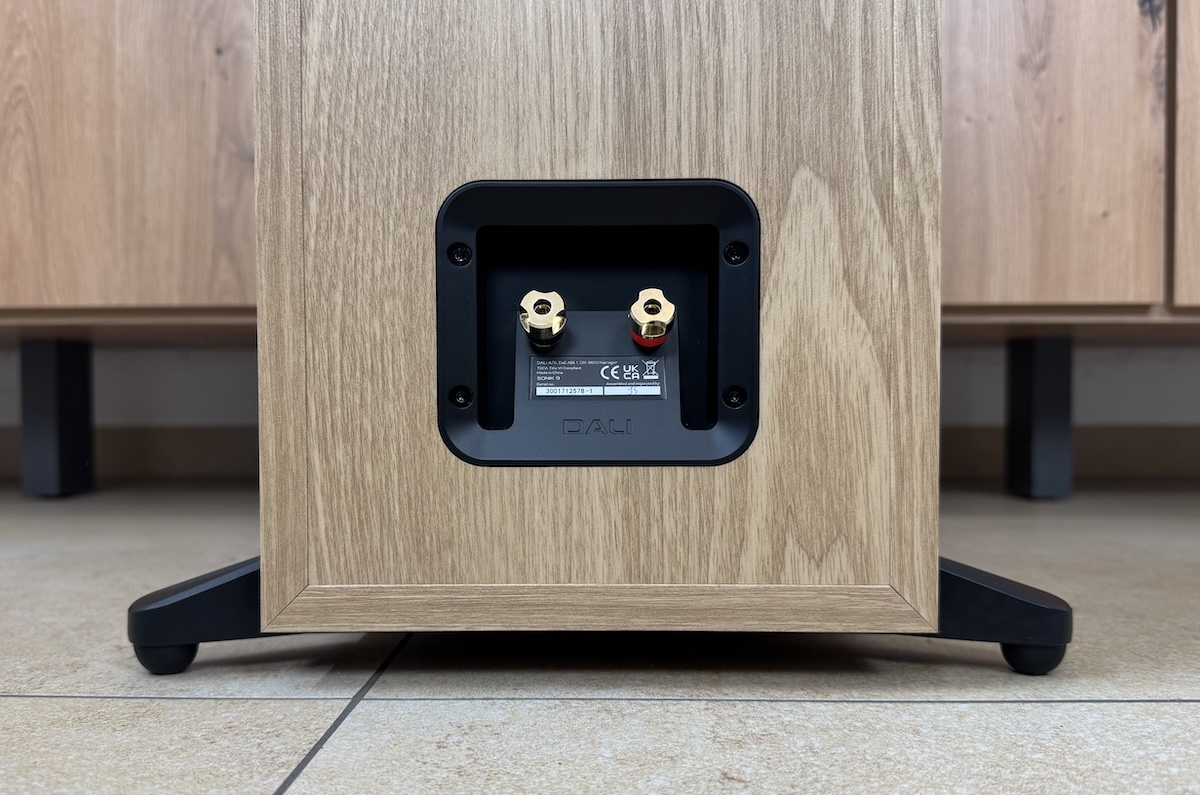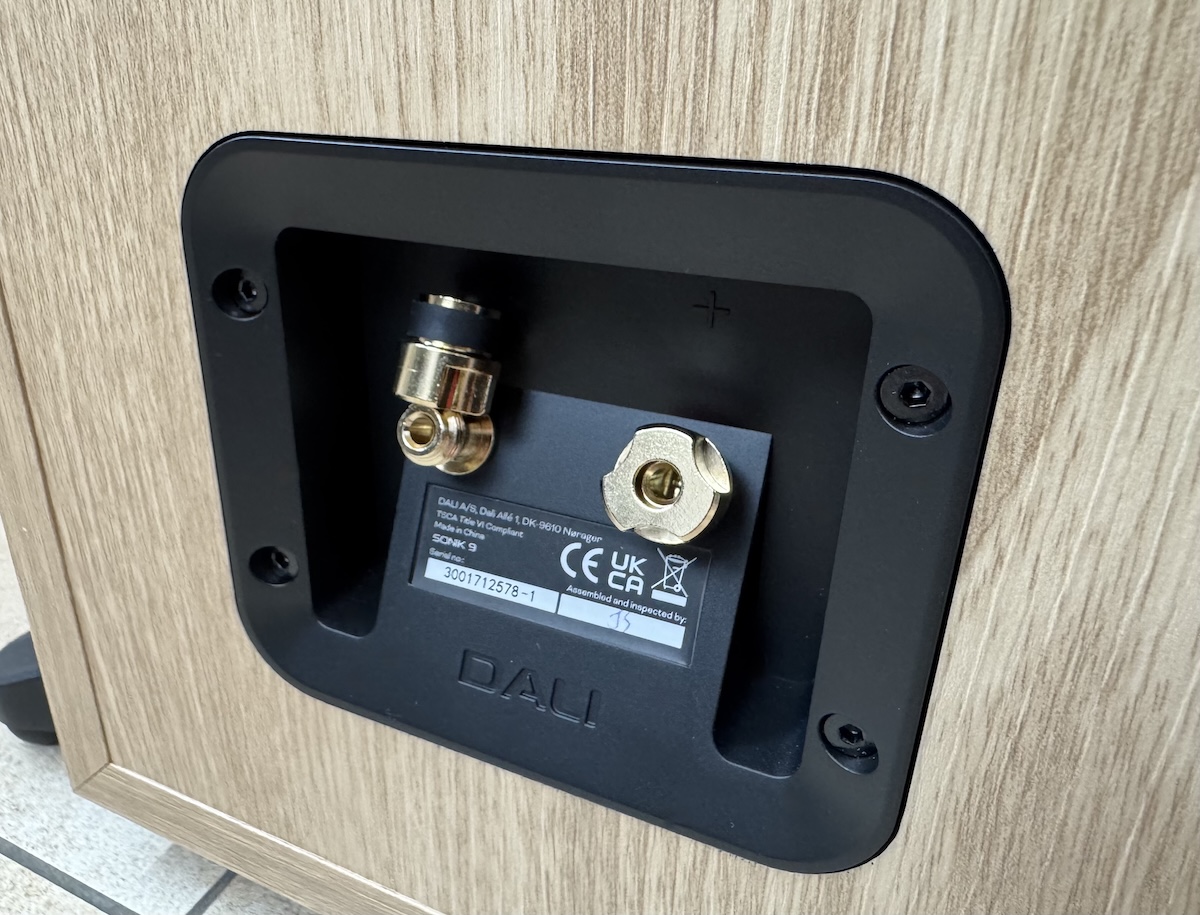 Gut, preisklassengemäß finden wir auch hier ein Kunststoffgerüst vor, aber der darauf aufgespannte Akustikstoff wirkt erstaunlich edel und wirft keine Falten. Dass man in Dänemark Wert auf kleine Einzelheiten legt, beweisen auch die Lautsprecherkabel-Anschlussterminals, die im Haus entwickelt wurden. Leider, ein kleiner Kritikpunkt, sind diese nicht in Doppelbestückung für möglichstes Bi-Wiring ausgeführt. Gerade bei einem großen und leistungsfähigen Standlautsprecher hätten wir uns das gewünscht.