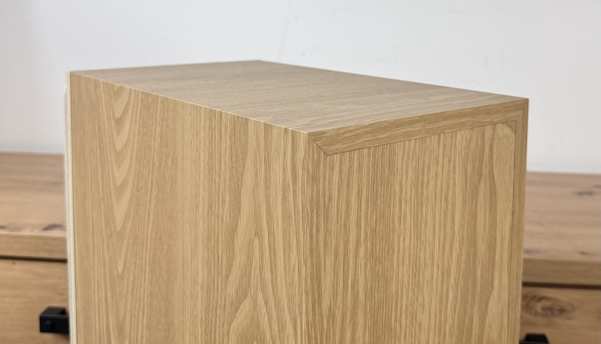 Der dänische Hersteller nutzt dies allerdings, um mit kontrastierenden Elementen zu arbeiten: Die in Creme lackierte Schallwand trifft auf einen Korpus aus Eiche Natur. Während die Farbversionen Weiß und Esche Schwarz kaum farbliche Kontraste bieten, ist bei der Walnuss-Variante wieder ein Kontrast zwischen Korpus und Schallwand festzustellen. Uns gefallen die Eiche Natur-Version unserer Testboxen und die Lautsprecher in Nussbaum aus optischer Perspektive definitiv am besten.