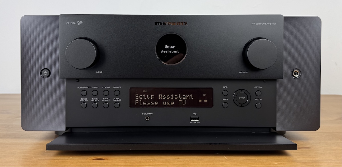 Der Marantz Cinema 40 gefällt uns optisch außerordentlich gut. Das schon erwähnte Modern Musical Luxury Design, das 2021 mit den Stereo-Komponenten MODEL 30 und dem SACD 30n eingeführt wurde, wirkt auch nach mittlerweile rund fünf Jahren noch sehr gelungen. Gerade dann, wenn es sich um einen Mehrkanal-Boliden mit ordentlich Höhe handelt, sieht die Optik eindrucksvoll und edel zugleich aus.