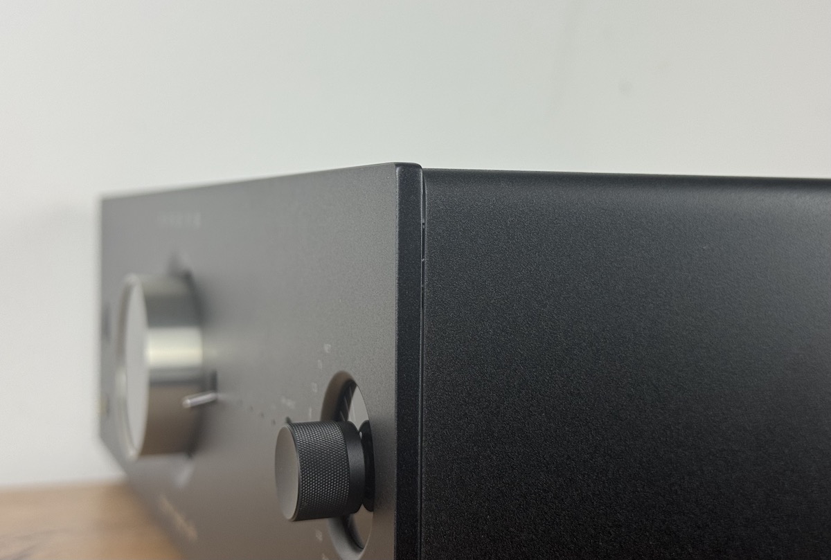 Die Frontblende ist einwandfrei verarbeitet und wird aus Aluminium hergestellt. Was uns zusätzlich noch gut gefallen würde, wäre ein Display – welches der A-50 jedoch nicht mitbringt.