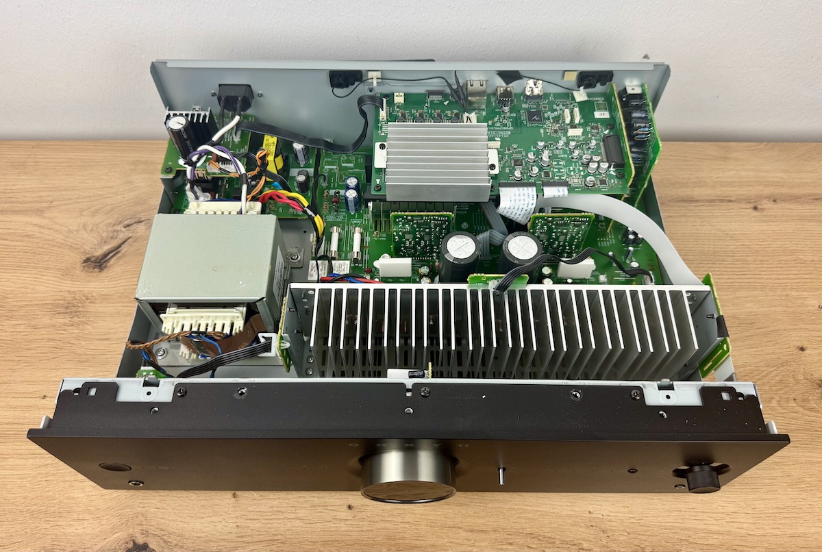 Keine Kritik gibt es fürs Platinenlayout. Die Elektrolyt-Kondensatoren als Kurzzeit-Stromspeicher werden exklusiv für Onkyo gefertigt. Zudem sitzt ein D/A-Wandler im Inneren, der bis zu 768 kHz/32-Bit (PCM) beziehungsweise bis zu DSD512 verarbeitet. Das ist sehr gut. Darüber hinaus ist der „Dynamic Intermodulation Reduction Circuitry“, kurz DIDRC, an Bord. Dabei handelt es sich um eine patentiere Schaltung, die einen dynamischen und zugleich homogenen Klang sichern soll. DIDRC arbeitet in Form einer diskreten Signalsteuerungsschaltung, die im analogen Filter des D/A-Wandlers untergebracht ist. Die hohe Anstiegsgeschwindigkeit von DIDRC reduziert Rauschen deutlich, was die Detailgenauigkeit des Klangs steigert.