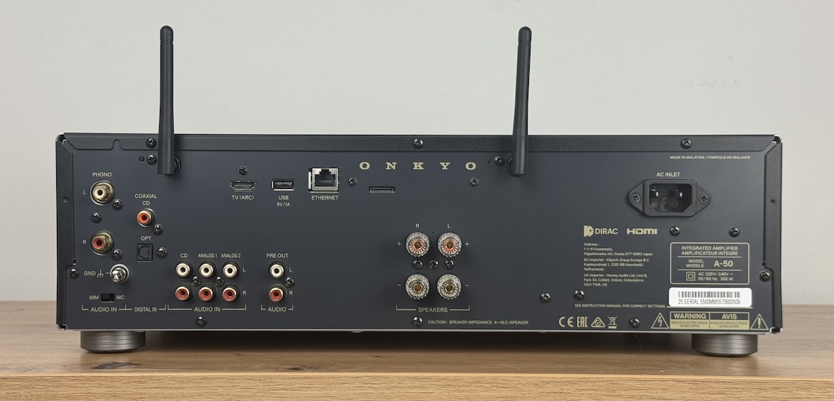 Das Anschlussangebot ist bis auf das Fehlen eines Pre-Outs zum direkten Anschluss eines aktiven Subwoofers vollständig. Besonders hervorheben müssen wir, dass die eingebaute Phonostufe MM- und MC-Tonabnehmersysteme unterstützt. Auch alles andere als selbstverständlich ist, dass der ICON A-50 über das sehr effektiv arbeitende Lautsprechereinmesssystem Dirac Live verfügt.
