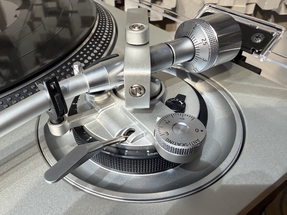 Dem Tonarm kommt eine wichtige Rolle zu, soll er doch, wenn er korrekt eingestellt ist, dem Tonabnehmersystem an dessen Spitze ermöglichen, die Rillen der Platte mit größtmöglicher Präzision abzutasten. Beim SL-1200GR2 setzen die Japaner auf einen S-förmigen Tonarm – ein schon beinahe legendäres Merkmal der Plattenspieler aus dem Hause Technics. Hergestellt wird der Tonarm aus einem enorm leichten, zugleich steifen Aluminiumprofil.