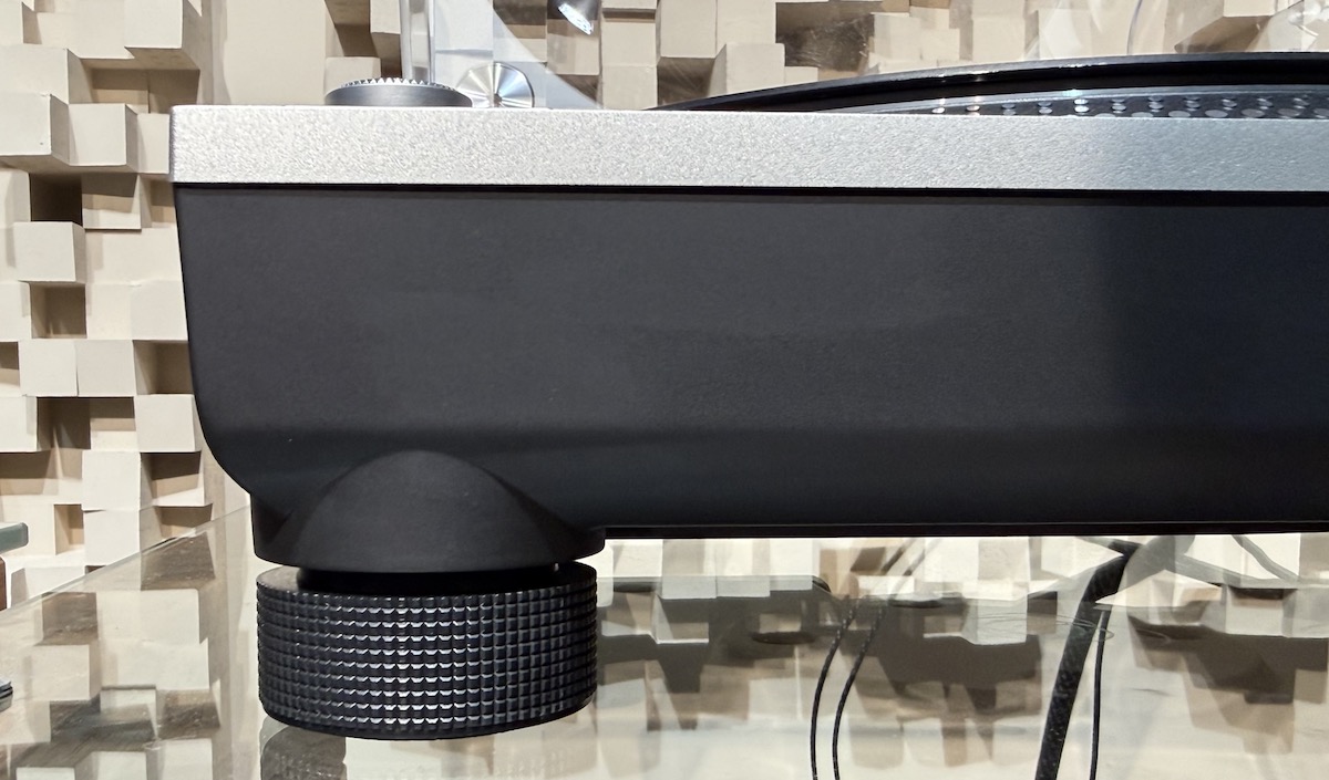 Durch Schraub-Gewindebolzen kann man die Dämpfungsfüße in der Höhe verstellen. Das verhindert störende Erschütterungen, wenn der SL-1200GR2 zum Beispiel in einem Regal Aufstellung bezieht. Eine optimale horizontale Ausrichtung des Plattenspielers ist darüber hinaus für eine exzellente mechanische Rotationsstabilität ohne störende Unwuchten verantwortlich.