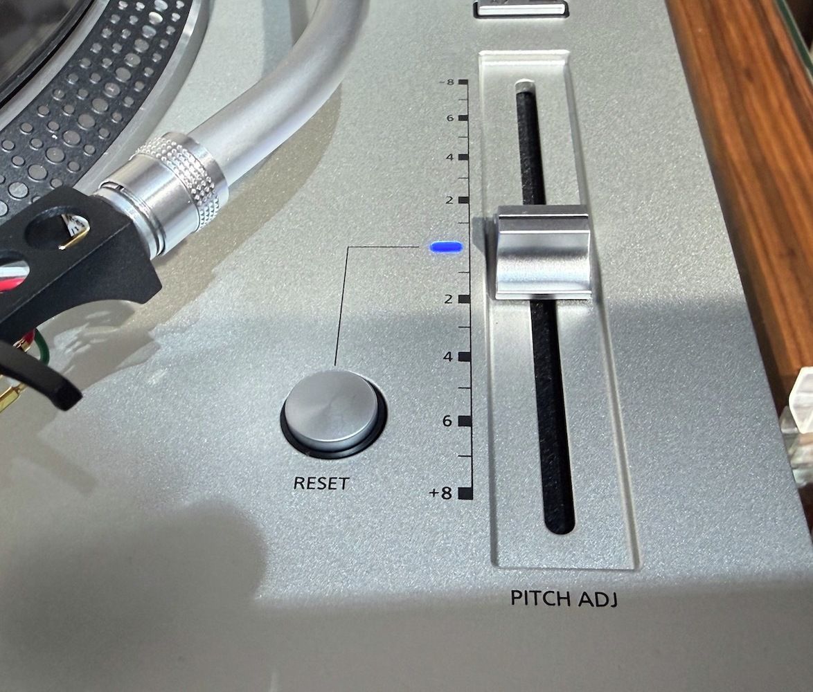 Zudem bringt er weitere Spezialitäten mit, die wir persönlich richtiggehend gut finden – aber Geschmäcker sind bekanntlich verschieden. Der Plattenspieler verfügt zum Beispiel für den Plattenteller über eine Pitch-Beleuchtung. Und ebenfalls kann man kontrollieren, ob der SL-1200GR2 „richtig rund läuft“: Eines kleines, blau leuchtendes Licht dient hier als Werkzeug. Auch gibt es ein ausfahrbares Licht fürs Absenken des Tonabnehmers – sehr hilfreich bei unzureichenden Beleuchtungsverhältnissen. Das alles in Kombination ermöglicht eine so einfache, durchdachte Handhabung, dass es eine Freude ist.