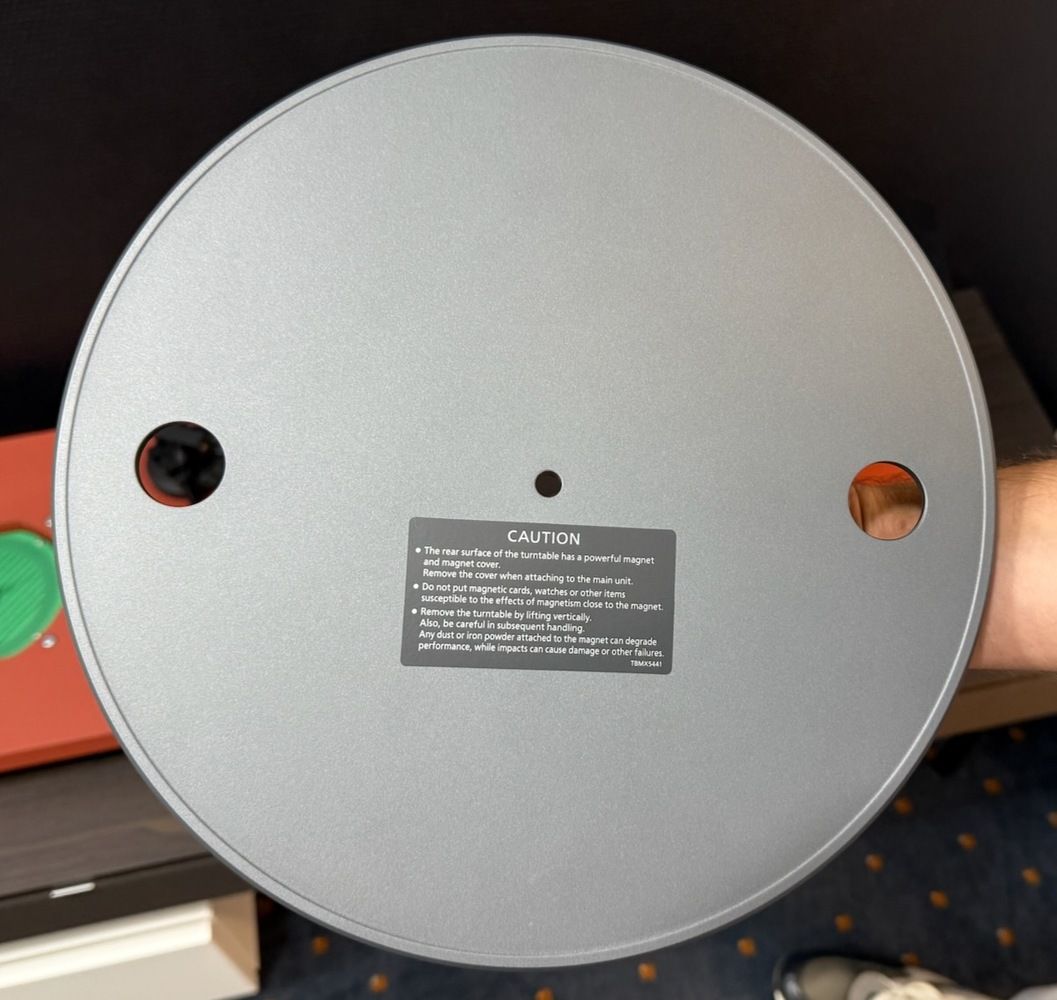 Auch hinsichtlich der Standfüße unter dem SL-40CBT herrscht durchdachte Hochwertigkeit vor, sodass Vibrationen effektiv gedämpft werden können. Zur Hochwertigkeit des SL-40CBT trägt auch der 1,26 kg wiegende Plattenteller aus Aluminium-Druckguss bei. Er weist spezielle Rippen auf der Unterseite auf, um maximale Steifigkeit sicherzustellen.