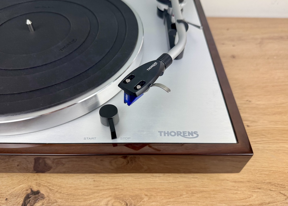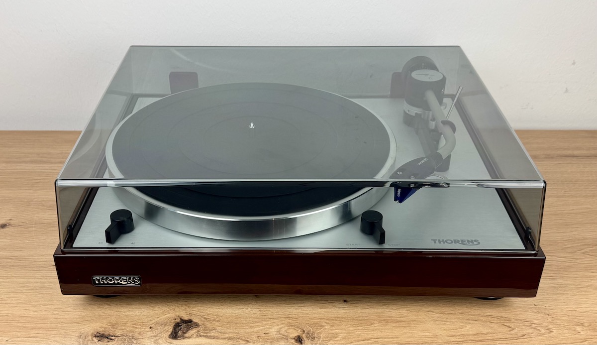 Für 1.399 EUR ist der Thorens TD 403 DD wahlweise in Schwarz-Hochglanz oder in Walnuss-Hochglanz erhältlich. Beim Modell aus der legendären Manufaktur handelt es sich um einen komplett manuellen Plattenspieler mit Direktantrieb und externem Netzteil. Für unseren Test kam der MM-Tonabnehmer Ortofon 2M Blue zum Einsatz.