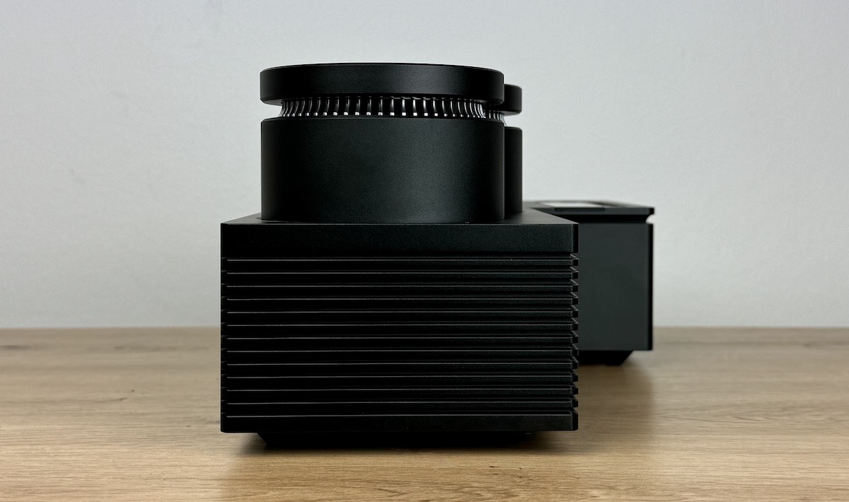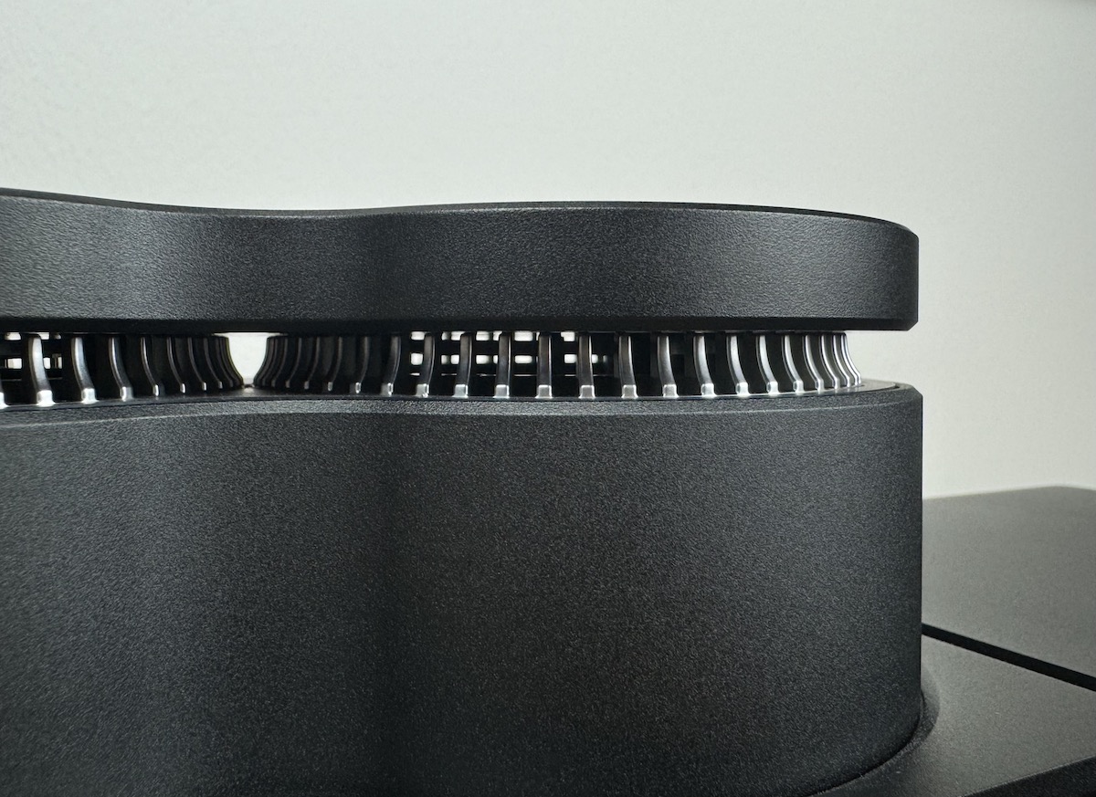 Der HA-L7A wird in einem aufwändigen Prozess in Japan gefertigt, und das merkt man definitiv. Hinzu kommen die ebenfalls edel ausgeführten beiden Drehregler (hier kann man das DSP-Soundfeld auswählen und die Lautstärke justieren) und die soliden Füße des Geräts, die aus Metall bestehen. Gleich fünf dieser konischen Stahlfüße befinden sich unter dem HA-L7A, und zwischen den Füßen sowie der Bodenplatte positioniert Yamaha spezielle Dämpfer, die für die Eliminierung störender Vibrationen verantwortlich sind. Die immensen 5,3 kg Gewicht des Gehäuses wirken sich natürlich auch positiv auf eine extreme Vibrationsarmut aus.