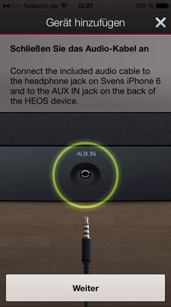 - Mittels eines 3,5 mm Klinkenkabels wird das Smartphone mit dem jeweiligen Device verbunden. Informationen zum Netzwerk zieht sich die Multiroom Audio-Komponente direkt vom Smartphone (Denon HEOS, Pioneer)